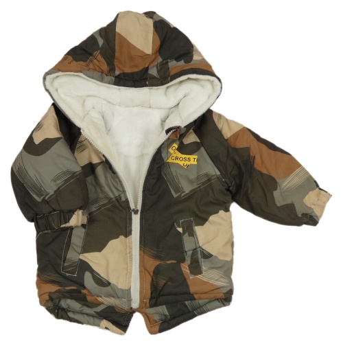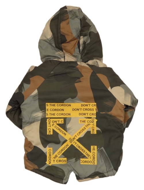 Kaki-hnedá vzorovaná šušťáková zateplená bunda s kapucňou