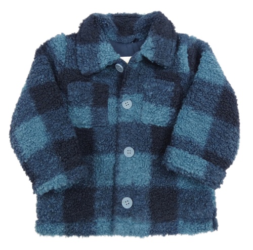 Tmavomodro-čierna kockovaná huňatá podšitá košeľová bunda Tu