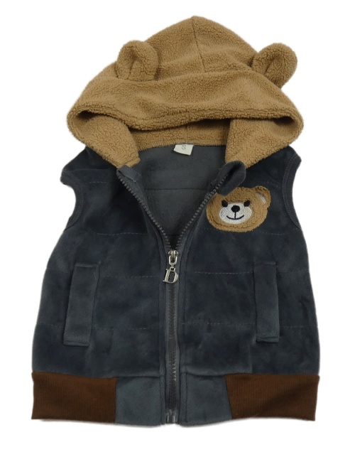 Antracitovo-hnedá sametovo/chlupatá vesta s medvěďom a kapucňou