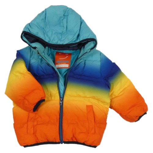 Modro-oranžovo-žltá šušťáková zimná bunda s kapucňou Next