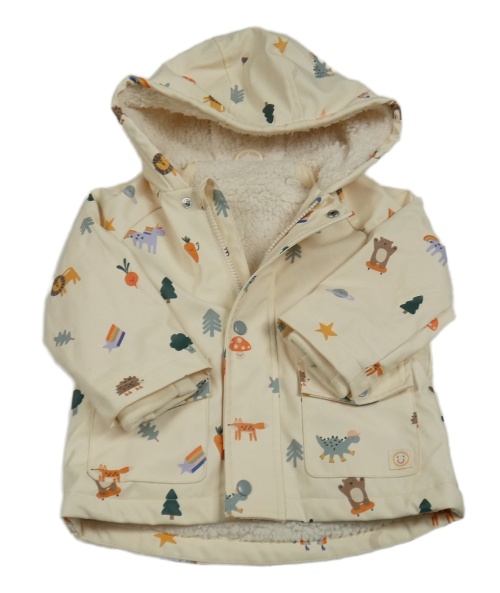 Krémová nepromokavá lehce zateplená bunda s obrázkami a kapucňou George