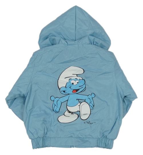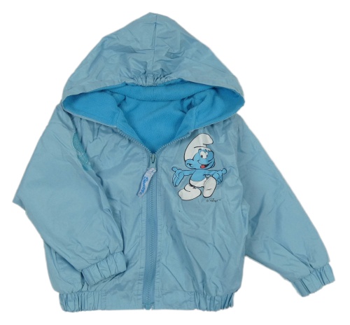 Svetlomodrá šušťáková jarná bunda so Šmoulou a kapucňou