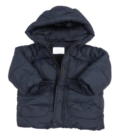 Tmavomodrá prešívaná šušťáková zimná bunda s kapucňou ZARA