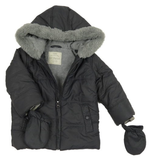 Tmavosivá šušťáková zimná bunda s kapucí + rukavice George