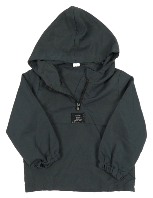 Antracitová šušťáková ľahká bunda s nášivkou a kapucňou