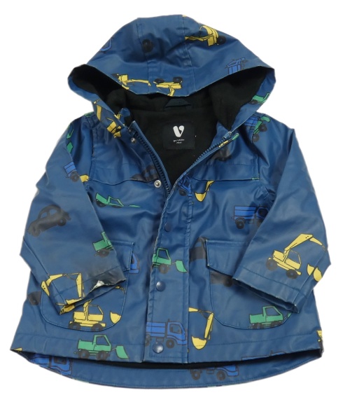 • Tmavomodrá nepromokavá jarná bunda so stavebními stroji a autami a kapucňou V BY VERY