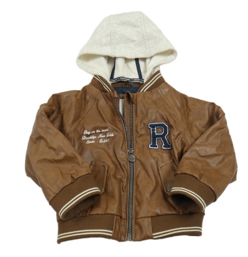Hnedá koženková zateplená bunda s nápisom a kapucňou C&A