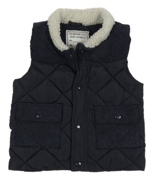 Tmavomodrá prešívaná šusťákovo/manšestrová zateplená vesta Matalan