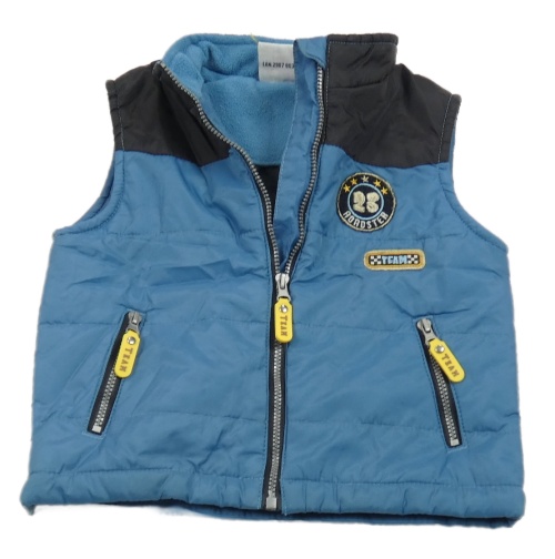 Modro-antracitová šušťáková zateplená vesta s nášivkami Papagino