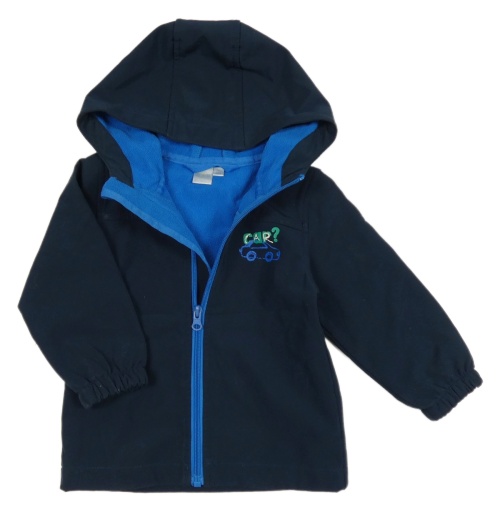 Tmavomodrá softshellová bunda s autom a kapucňou