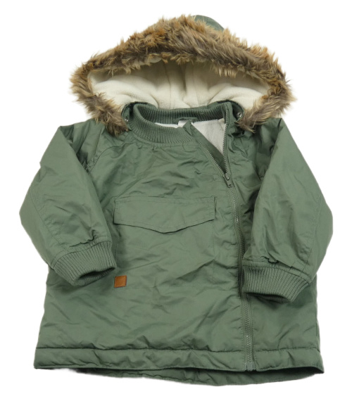 Khaki šušťáková zateplená bunda s kapucňou s kožešinou H&M