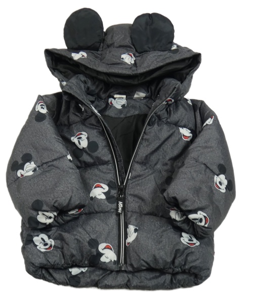 Čierno-sivá melírovaná šušťáková zimná bunda s Mickey Mousem a kapucňou H&M