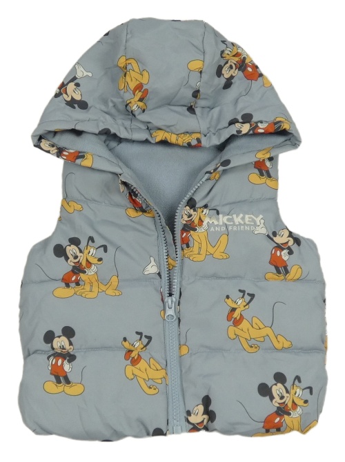 Svetlomodrá šušťáková zateplená vesta s Mickeym s Plutem a kapucňou Tu