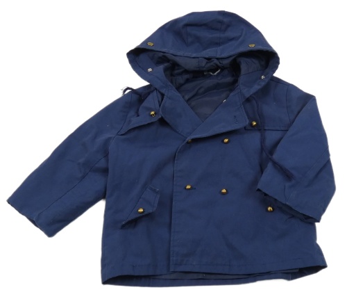 Tmavomodrý plátenný jarný kabát s kapucňou