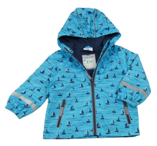 Modrá šušťáková jarná bunda s plachetnicemi a kapucňou Topolino