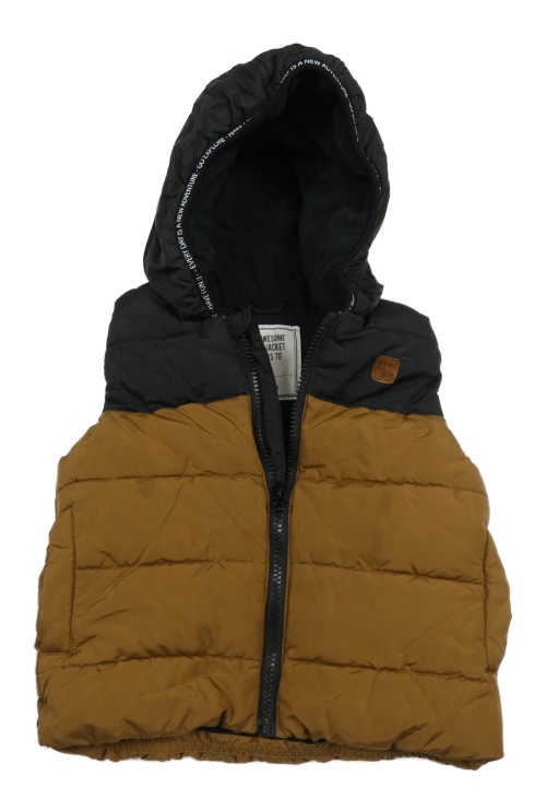 Hnedo-čierna šušťáková prešívaná zateplená vesta s kapucňou Matalan