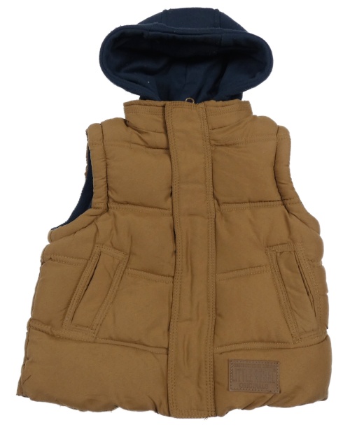 Hnedo-tmavomodrá šušťáková zateplená vesta s teplákovou kapucňou Rebel