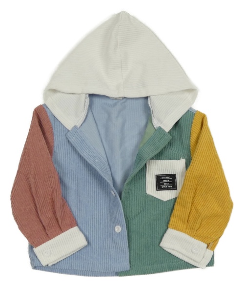 • Bielo-modro-ružovo-horčicová rebrovaná zamatová košeľová bunda s kapucňou Shein