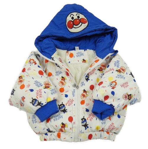 Bielo-zafírová prešívaná šušťáková zimná bunda s obrázkami a kapucňou