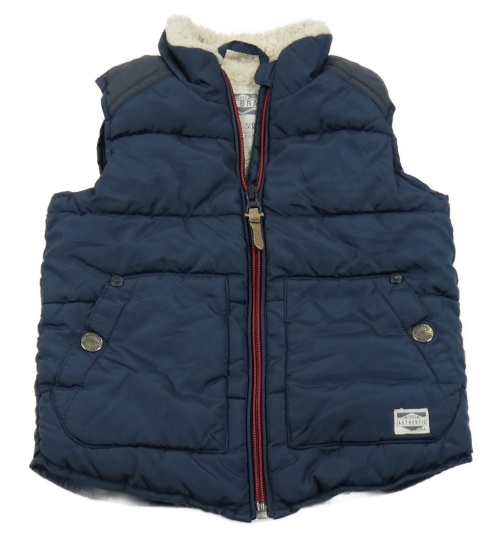 Tmavomodrá prešívaná šušťáková zateplená vesta s nášivkou Next