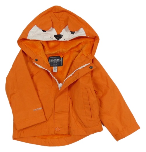 Oranžová šušťáková jarná funkčná bunda s liškou na kapuci Regatta