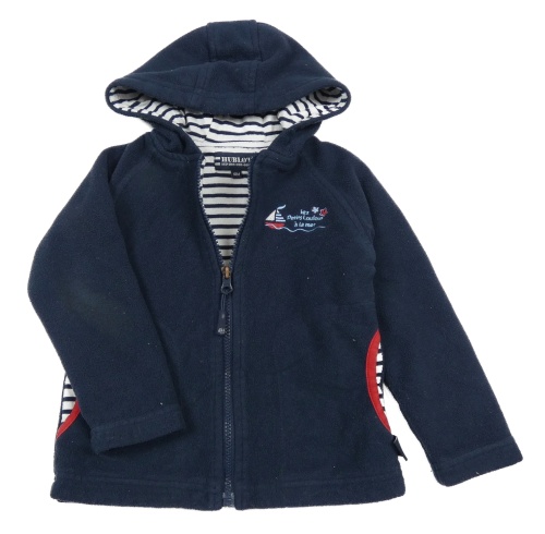 Tmavomodrá fleecová podšitá bunda s lodičkou a nápismi a kapucňou HUBLOT
