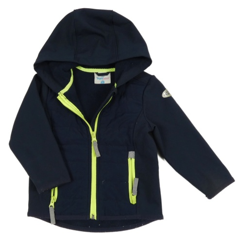 Tmavomodrá šusťákovo/softshellová bunda s nášivkou a kapucňou Topomini