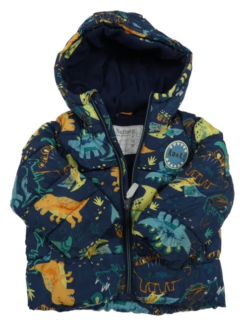 Tmavomodrá šušťáková zimná bunda s dinosaurami a kapucňou Nutmeg