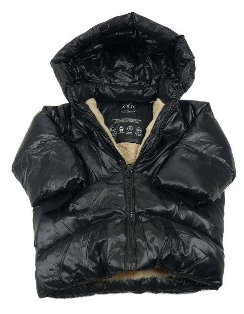 Čierna šušťáková zimná bunda s kapucňou Zara