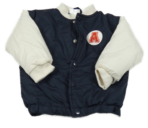Tmavomodro-biela šušťáková zateplená bunda s písmenem so cute