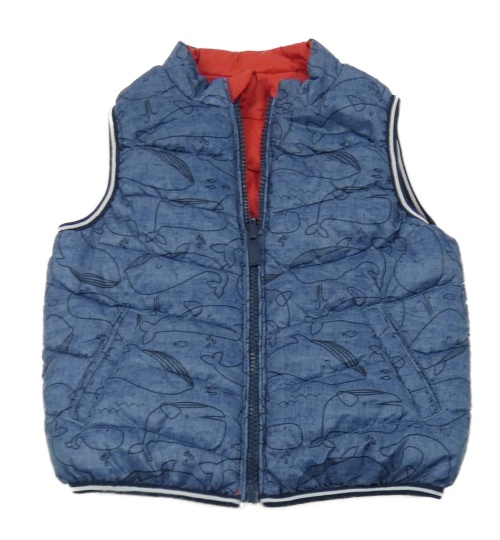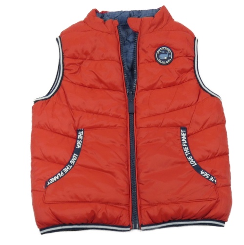 Červená šušťáková zateplená obojstranná vesta s nášivkou C&A