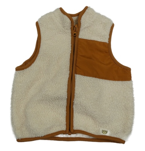 Béžovo-hnedá huňato/šusťáková vesta s vreckom