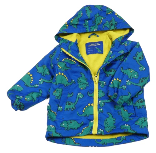 Modro-zelená šušťáková jarná bunda s dinosaurami a kapucňou St. Bernard