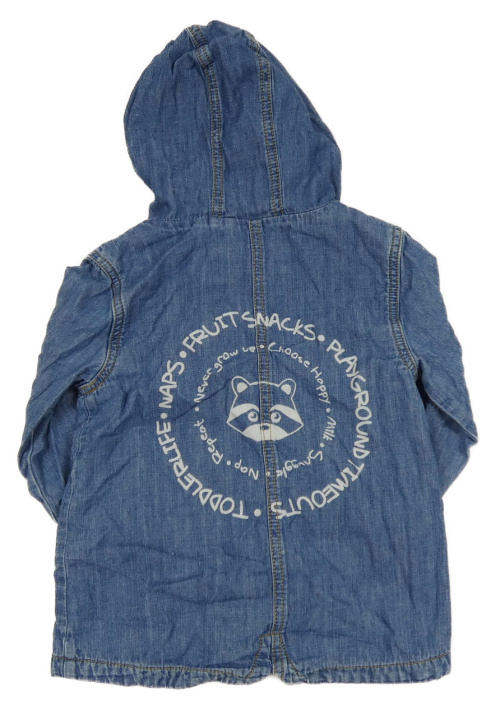 Modrá ľahká rifľová podšitá bunda s nápisom a kapucňou