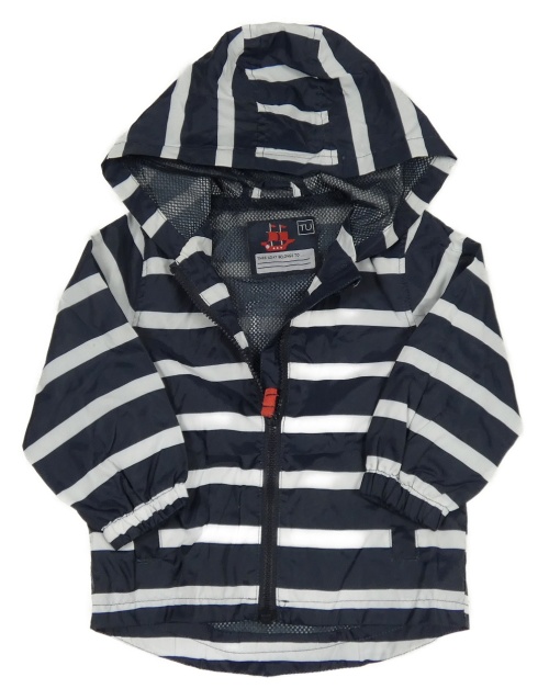 Tmavomodro-biela pruhovaná šušťáková jarná bunda s kapucňou Tu
