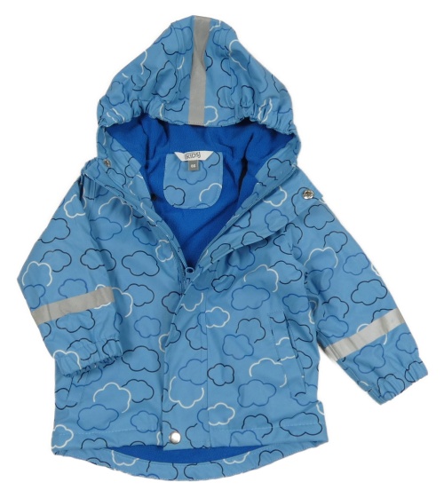 Modrá vodeodolná zateplená bunda s mráčikmi a kapucňou