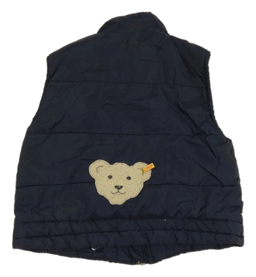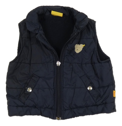 Tmavomodrá šušťáková zateplená vesta s medvedíkom