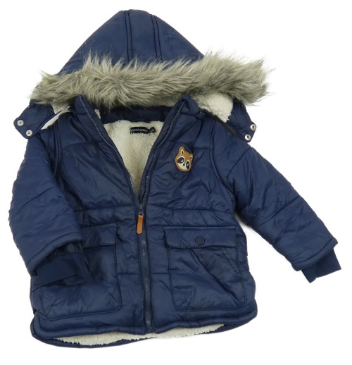 Tmavomodrá šušťáková zimná bunda s mývalem a kapucňou