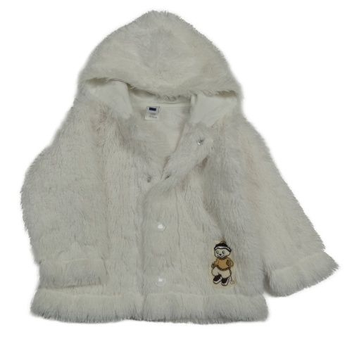 Biela chlpatá bunda s bobrem a kapucňou