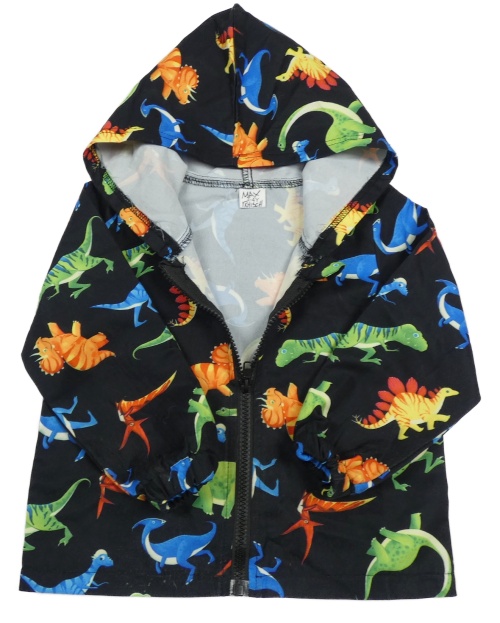 Čierna šušťáková ľahká bunda s dinosaurami a kapucňou