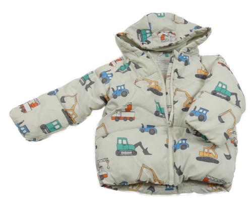 • Svetlosivá prešívaná šušťáková zimná bunda so stavebními stroji a kapucňou PRIMARK