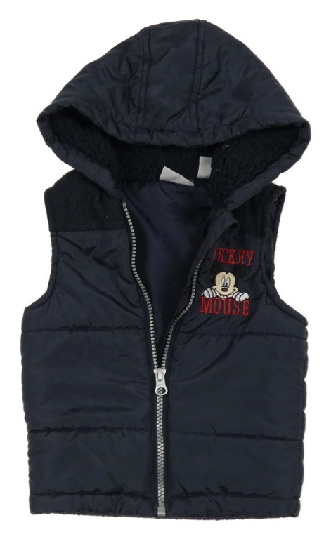 Tmavomodrá šušťáková zateplená vesta s Mickeym a kapucňou Disney