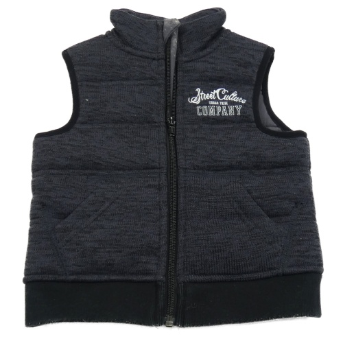 Tmavomodro-čierna melírovaná pletená zateplená vesta s nápisom