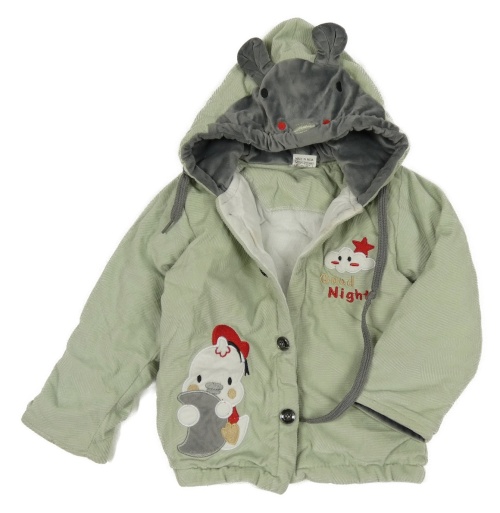 Světleolivový vzorovaný sametový zateplený kabátek s kuřátkem a kapucňou