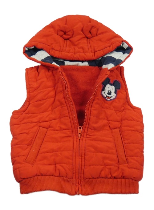 Červená šušťáková zateplená vesta s Mickeym a kapucňou Disney