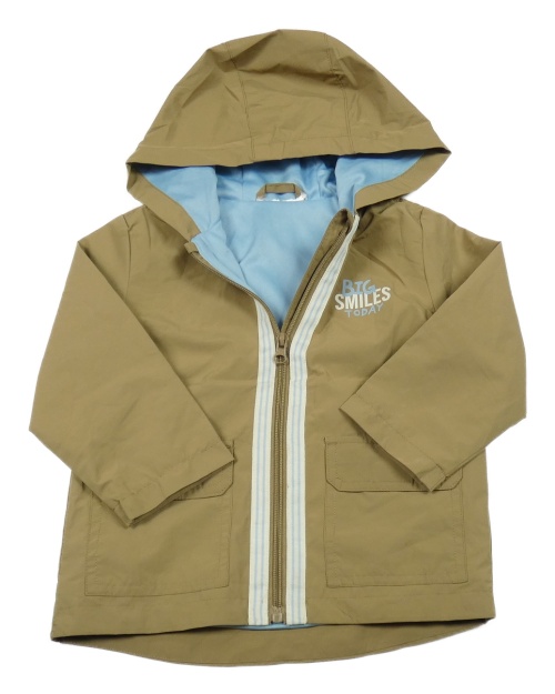 Piesková á šušťáková jarná bunda s nápismi a kapucňou