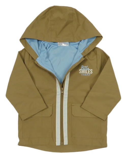 Hnedá šušťáková jarná bunda s nápisom a kapucňou Ergee
