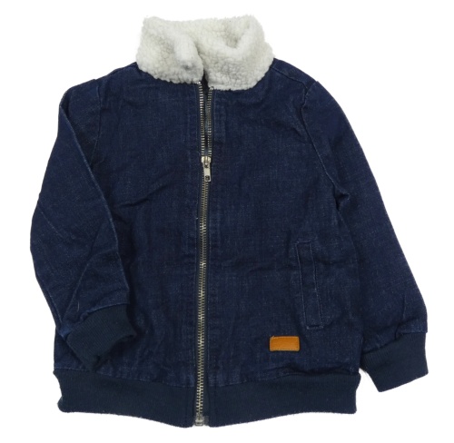 Tmavomodrá rifľová bunda s kožušinovým golierom