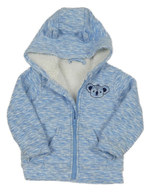 • Světlemodro-biela žíhaná fleecová prepínaci zateplená mikina s koalou a kapucňou