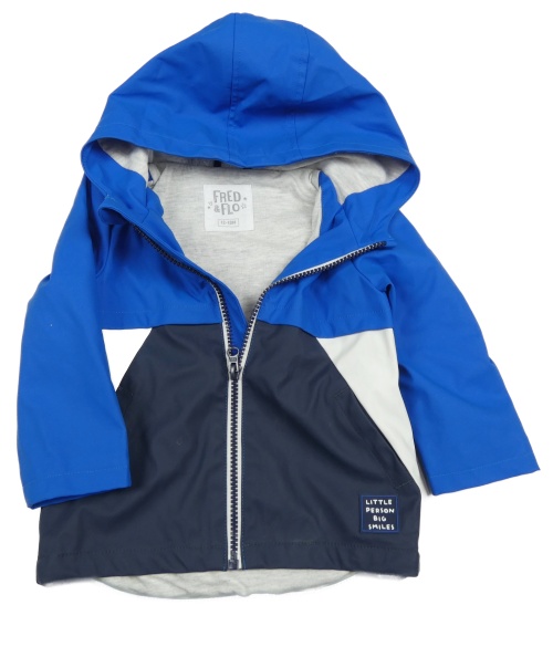 Safírovo-tmavomodro-biela nepromokavá jarná bunda s kapucňou F&F
